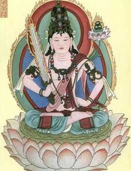 光明菩萨真名耶输陀罗,是释迦摩尼佛出家的夫人,释迦摩尼佛成佛后,耶输陀罗随姨母摩诃波阁波提夫人随佛出家成为佛教最早的比丘尼,被佛祖授於具足千光明菩萨。梵名Yas/odhara,巴利名Yasodhara,又作耶输多罗、耶惟檀。意译作持誉、持称、华色。又称罗侯罗母。中印度迦毗罗城释种执杖之女,悉达多太子之正妃,罗侯罗之生母。为婆私吒族释种大臣摩诃那摩之女。相好端严,姝妙第一,具诸德貌。