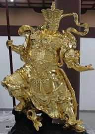 北方多闻天王,普天身护法像,是中国大乘佛教寺庙中“天王殿”中的伽蓝,一般身绿色,穿甲胄,右手持慧伞左手握持神鼠——吐宝鼠。“毗沙门”梵文译音,翻译为“多闻"。尊王据须弥山天北方世界,尊手持慧伞,用以降伏魔众,护持众生修行资粮。