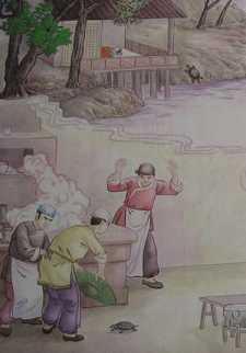 黄德环命仆人蒸鳖,用斗笠盖锅蒸煮,蒸过一阵,仆人打开斗笠来看,却见鳖仰面抓附于笠上,背部全被蒸烂,然而头部和四足还能伸缩,仆人见状深生恰恰怜悯,暗将鳖,潜放于可泾间...